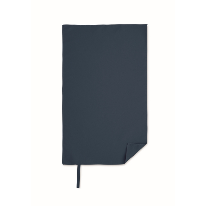 Een lichte microvezelhanddoek met elastische lus voor eenvoudig vervoer