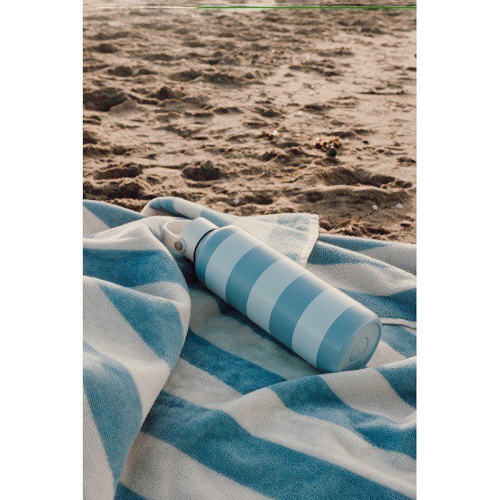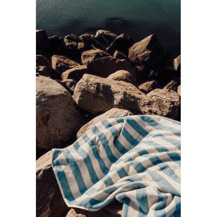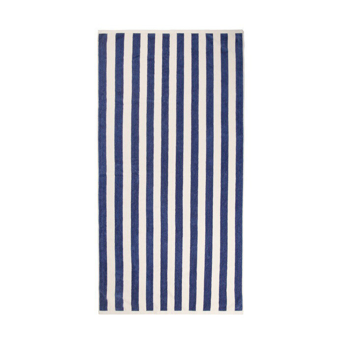 Strandhanddoek van gerecycled katoen met GRS-certificering (Global Recycled Standard). Geweven met een klassiek tweekleurig strepenpatroon en een zachte feel. Het gewicht van 450 g/m² zorgt voor goede absorptie en een stevige kwaliteitsbeleving bij elk gebruik. Formaat 80x160 cm. Ideaal voor ligbedden, boten of bij het zwembad, zonder te veel ruimte in te nemen. Verantwoord geproduceerd in Portugal. Een betrouwbare keuze voor elke dag. Handig als relatiegeschenk voor zomerevents of merkacties.