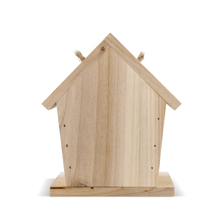 Houten vogelhuisje met certificering voor duurzaam bosbeheer, ontworpen als schuilplek voor kleine tuinvogels zoals pimpelmezen en koolmezen. Het heeft een invliegopening van 30 mm. Dat helpt grotere soorten buiten te houden en maakt het geschikt voor gebruik rondom huis. De aanwezigheid ondersteunt het evenwicht in het ecosysteem door biodiversiteit te stimuleren en natuurlijke plaagbestrijding te helpen. Je kunt het personaliseren voor merkacties in tuiniercampagnes of bedrijfsinitiatieven.