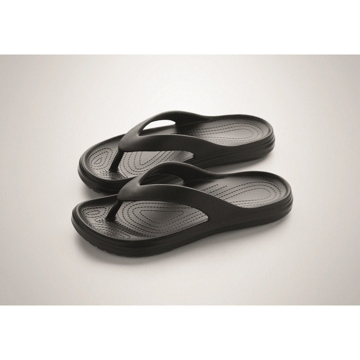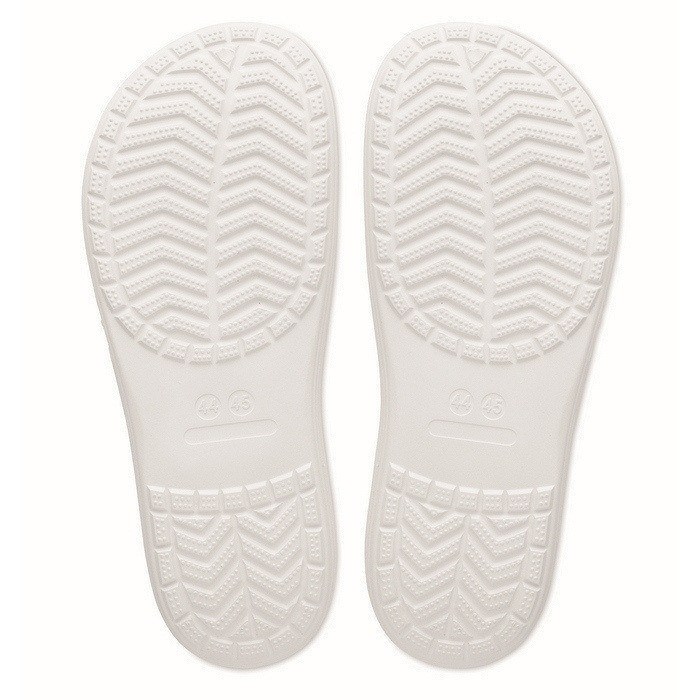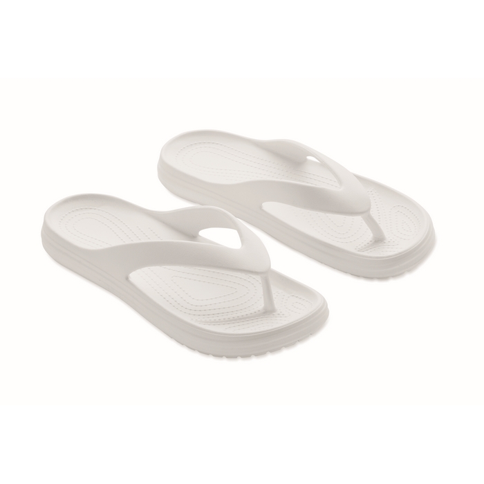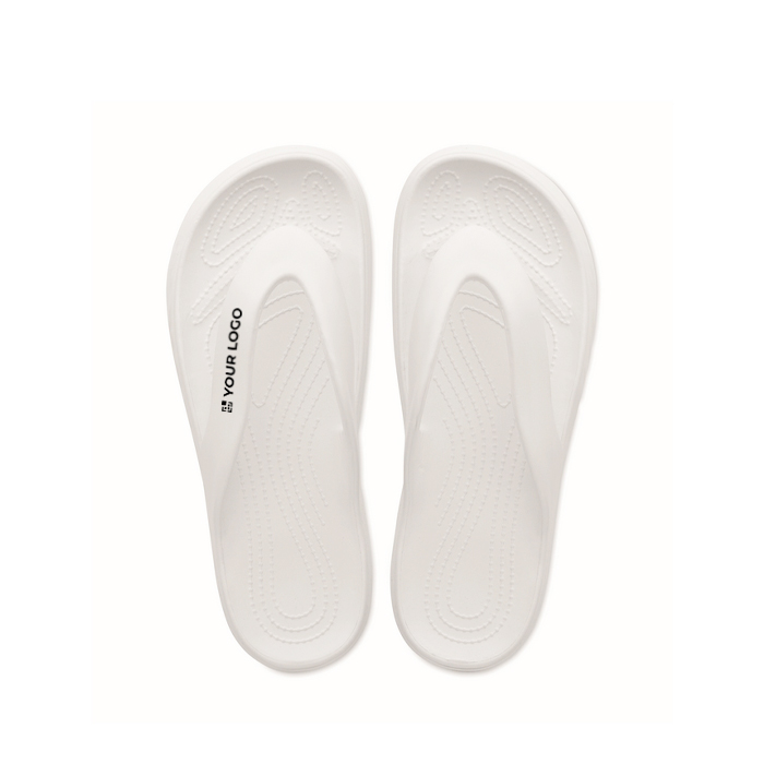 Strandslippers van EVA in verschillende maten, bedoeld voor incidenteel gebruik in zomerse omgevingen en tijdens buitenactiviteiten. Het materiaal zorgt voor lichtheid en een comfortabel gevoel, handig voor korte verplaatsingen bij zwembaden, spa’s of rustzones. Het eenvoudige model maakt ze geschikt om te geven in welkomstpakketten of als aanvulling bij promotionele acties. Verkrijgbaar in één specifieke maat om de logistiek bij gesegmenteerde campagnes te vereenvoudigen. Aanbevolen voor bedrijfsevenementen, hotels of merkactivaties in het zomerseizoen.